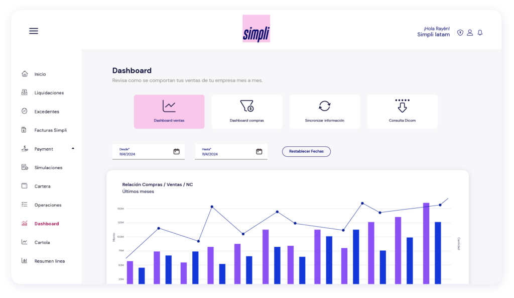 Inspecciona el progreso de tu negocio con nuestros gráficos, tablas y métricas.